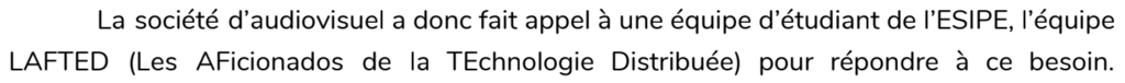 Les étudiants ont eu un mois pour proposer une solution. Un mois c'est court, d'autant plus pour des étudiants sachant qu'avec les autres modules, ils ne sont pas à 100% de la journée dessus.
