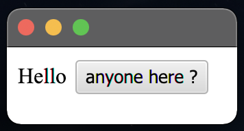 (.getElementById js/document "app")))Ensuite, utilisons shadow-cljs pour compiler notre composant et enveloppons le code JavaScript résultant dans une page HTML avec l'aide de hiccup. Enfin, affichons la page en question à l'aide d'une vue Web.